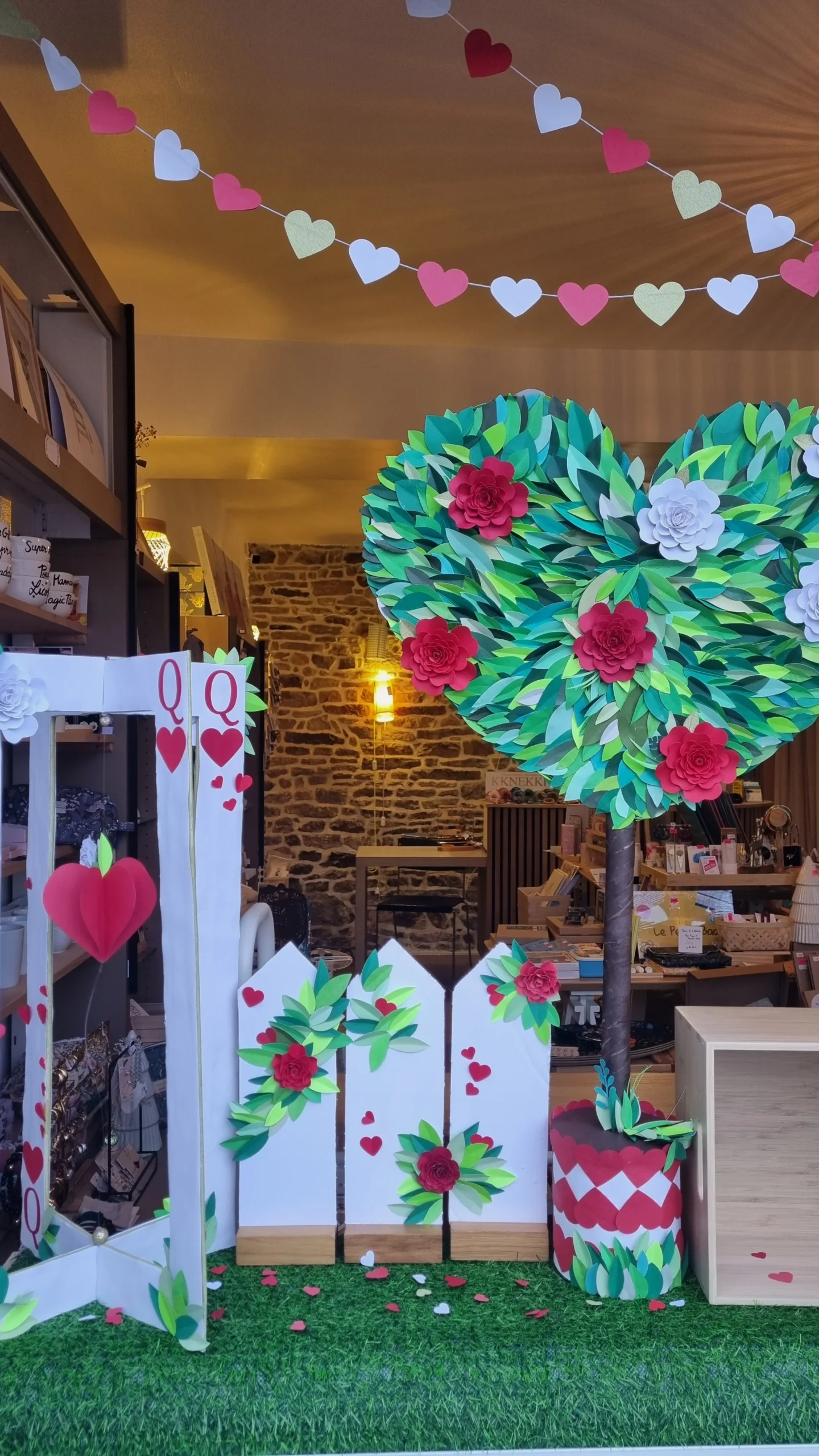 À l’occasion de la Saint-Valentin, la boutique De Jolies Choses à Saint-Avé s’est transformée en un univers inspiré de la Dame de Cœur d’Alice au pays des merveilles.
